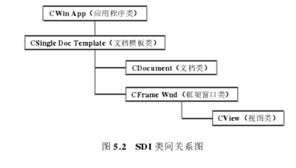 表达式,实现了更好的生命周期管理。在 MFC 中可以使用 MFC 向导 App Wizard 创建应用程序工程,应用程序类型由Dialog based(基于对话框应用程序)、SDI:Single Document Interface(单文档应用程序)、和 MDI:Multiple Documents Interface多文档应用程序)组成。要实现单文档应用程序的功能设计,SDI 几种类需要共同作用,SDI 类之间的关系图如图 5.2 所示。
