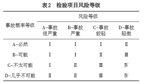 然后,确定事故概率等级。根据危险源在使用寿命内产生相应事故的可能性分为必然、可能、 不太可能、几乎不可能4个等级。 最后,根据事故严重程度和事故发生概率等级,借助风险矩阵(见表2)确定各自危险源的风险 等级。其中Ⅰ级风险表示风险很高、Ⅱ级风险表 示风险较高、Ⅲ级风险表示风险一般、Ⅳ级风险表 示风险较低。