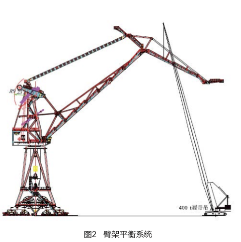 随着我国船舶工业的快速发展,所建船舶的吨位也越来越大,船坞的主要配套设备—— —门座式起重机的需求增长迅速。门座式起重机总吨位一般达800~900 t,单件设备从十几 吨140 t不等,外形尺寸最长达到60 m,整个系统在安装过程中需要保持在平衡状态,在吊机资源有限的情况下,如何保持安装过程中设备本身的平衡状态很重要。